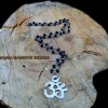Sterling Silver ( 925) Ohm Pendant , Hand Cut and Hammered , Black Matte Finish Onyx 6 mm Bead Necklace